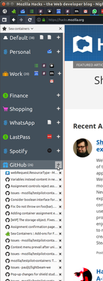Sea Containers - это приложение для персонализации на основе подписки, разработанное специально для пользователей Firefox. Это инновационное программное обеспечение позволяет пользователям управлять своим опытом просмотра, организуя вкладки и контейнеры на основе различных тем или проектов. Каждый контейнер может иметь свои собственные настройки, куки и хранилище, что обеспечивает возможность пользователям разделять свои онлайн-активности и легко к ним получать доступ.